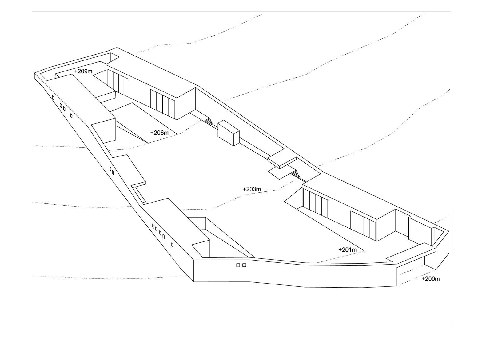 Si immagina una casa come un recinto dove vengono abbattuti i confini tra spazi chiusi e spazi aperti, spazi condivisi e spazi privati. Il paesaggio fa parte del progetto entrando nel recinto e permettendo all’orografia di essere parte dell’architettura.