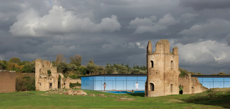 a residential pavillon for luxury co-housing (with swimming pool), inside circo di massenzio