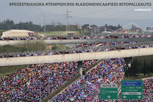 il tentativo di arginare l’uso del mezzo privato era a Roma sempre più difficoltoso. da un lato il caos del sistema dei mezzi pubblici, dall’altra la pigrizia dei romani, non c’era verso per il sindaco di riuscire a trovare delle misure condivise. fu così che decise di istituire la domenica a piedi sul GRA, non si capì se come forma di provocazione estrema o come atto di attenzione verso un’infrastruttura ormai mitica della città. ma quello che sorprese ancora di più fu il successo dell’iniziativa…
