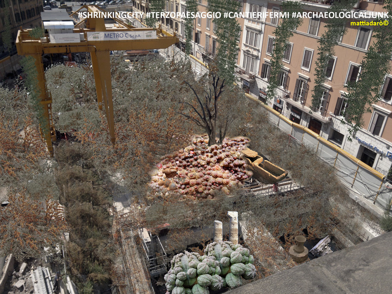 Cantieri che non decollavano vennero abbandonati del tutto, così come il caso di quelli della metro C. Nel giro di poco i cantieri vennero sommersi di piante infestanti creando uno scenario da terzo paesaggio, che tra l’altro, a seguito dei movimenti di terreno, portò alla luce nuovi reperti archeologici (anfore, capitelli, colonne)… altri episodi: district rome