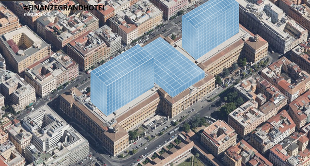 E con lo stesso criterio dell’Ospedale del Celio si trasformarono i grandi vuoti delle corti del vecchio Ministero delle Finanze in pieni, trasformando l’edificio nell’immenso Finanze Grand Hotel, un super albergo di lusso…