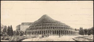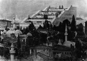 Non è che non conoscessi Poelzig, mi ricordo pure di essere andato in pellegrinaggio, in uno degli ortodossi e immancabili tour architettonici a Berlino, a vedere la casa della radio. Ma quando mi sono imbattuto sulla rete (devo, per correttezza, perché altrimenti mi infastidisce fare pubblicità ai social network, citare il social network Pinterest che tramite i suoi algoritmi alle volte riesce davvero a propormi cose che proprio volevo vedere) in un disegno di progetto (immagine 1) della Casa dell’Amicizia a Istanbul… Sono impazzito. L’embrione dell’ossessione si era ormai formato.