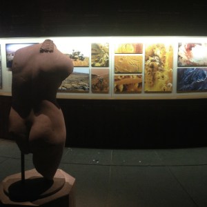 foto della fessura espositiva con una statua del museo in primo piano