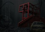 fotomontaggio in scenario apocalittico di una folie del parc de la villette di tschumi (stud. petricca, taji, tribolati)