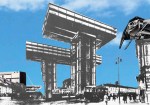 fotomontaggio 2 jean prouvé decreta il progetto di franchini, piano e rogers vincitore del concorso per il centre pompidou (stud. alba, di belardino, cusumano, caroli, de biase, ferrulli, frassanito, rossetti)