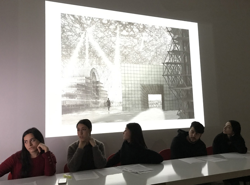 fotomontaggio di un paesaggio composto dalle opere assegnate (stud. aureli, conte, cupellini, cutecchia, fiorentini)