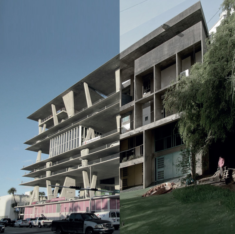 combinazione visiva tra il car parking di miami di herzo&demeuron e villa shodhan di le corbusier (la crisi dell’utopia, il ritorno del brutalismo) (stud. salvo e scaiola)