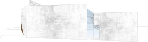 La scuola infatti si plasma in relazione al soleggiamento prevedendo di illuminare tutte le aule, con luce riflessa dal muro cementizio chiaro del corpo dell’auditorium/palestra, e dando vita ad uno spazio/cavità al suo interno coperto con una struttura in vetro apribile, capace di funzionare anche da effetto serra per accumulare calore quando necessario.