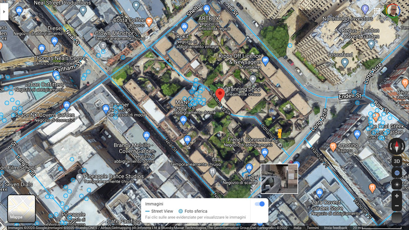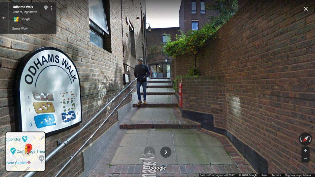 Ecco questa riflessione nasce con il caso molto interessante di Odhams Walk, opera del 1979 progettata e realizzata dal Greater London Council a Londra, che si rivela essere molto adatta alla visita in modalità street view, opera versatile proprio in relazione al suo essere attraversata, guardata (che offre sempre scenari inediti e diversi), capace di intercettare la piacevolezza del suo attraversamento come spunto progettuale.