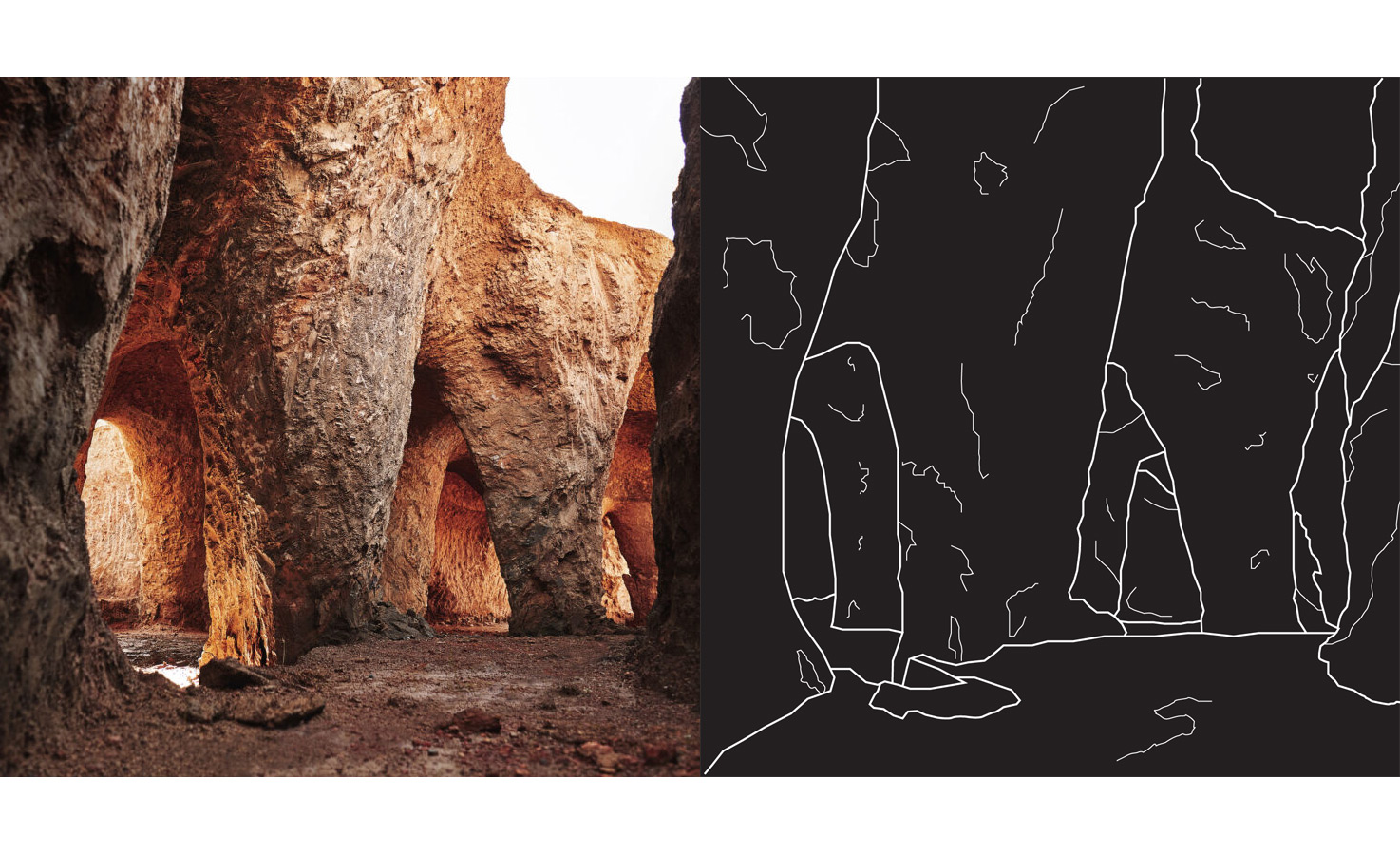 Ridisegno l’antro immaginato da Junya Ishigami (2013) per questa tipologia ibrida, combinazione tra una casa e un ristorante, tentando di comprendere meglio la sfida poetica di “costruire un’architettura che è come una roccia” (Ishigami) quasi a suggerire che l’architettura si formi in modo naturale come una roccia; e per scongiurare l’ “effetto-disney” dell’artefatto, la realizzazione prevede di scavare nel terreno una serie di buchi per poi riempirli di calcestruzzo cosicché successivamente si crea in negativo (come un calco) un paesaggio artificiale ma dal sapore naturale. #remakearchitecture, ridisegnare per capire.