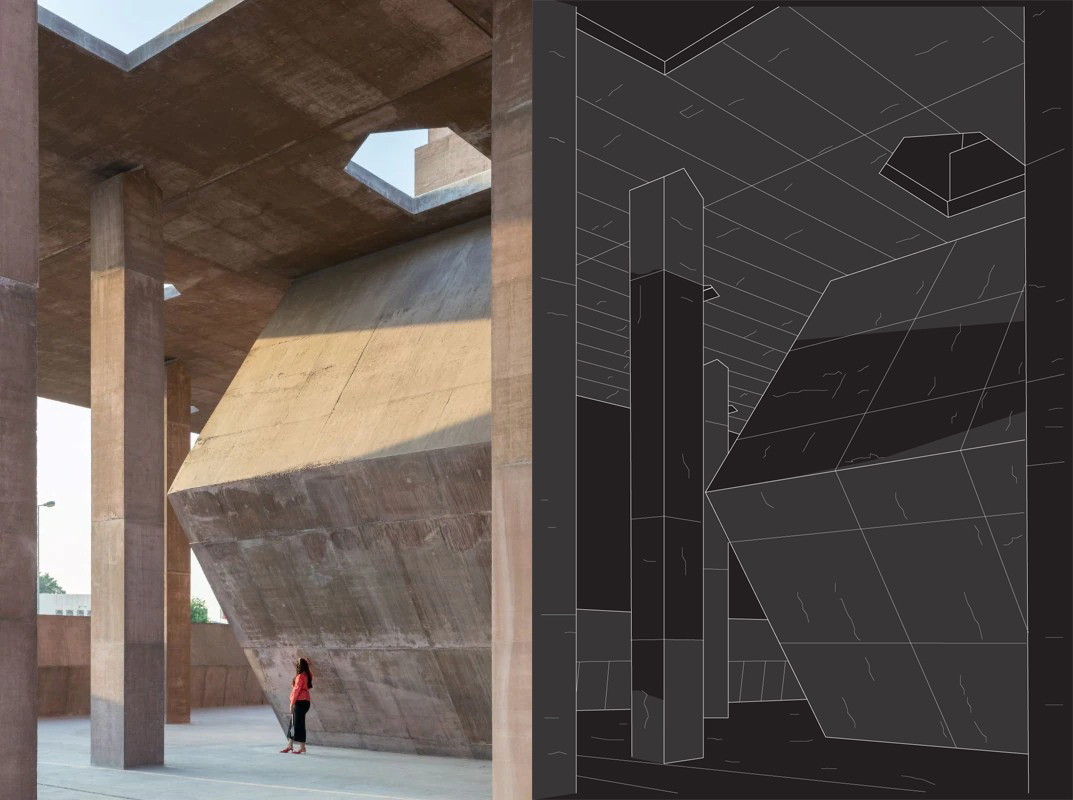 #savearchitecture qui ho ridisegnato uno scorcio del progetto di Valerio Olgiati, Pearling Site Visitor Center di Muharraq, Bahrein per mettere in evidenza la bella relazione tra la struttura di copertura (+10m sopra il suolo), con il suo sistema di bucature e pilastri, e la costruzione a forma di blocco sottostante ed ermetica #remakearchitecture ridisegnare per reinterpetare
