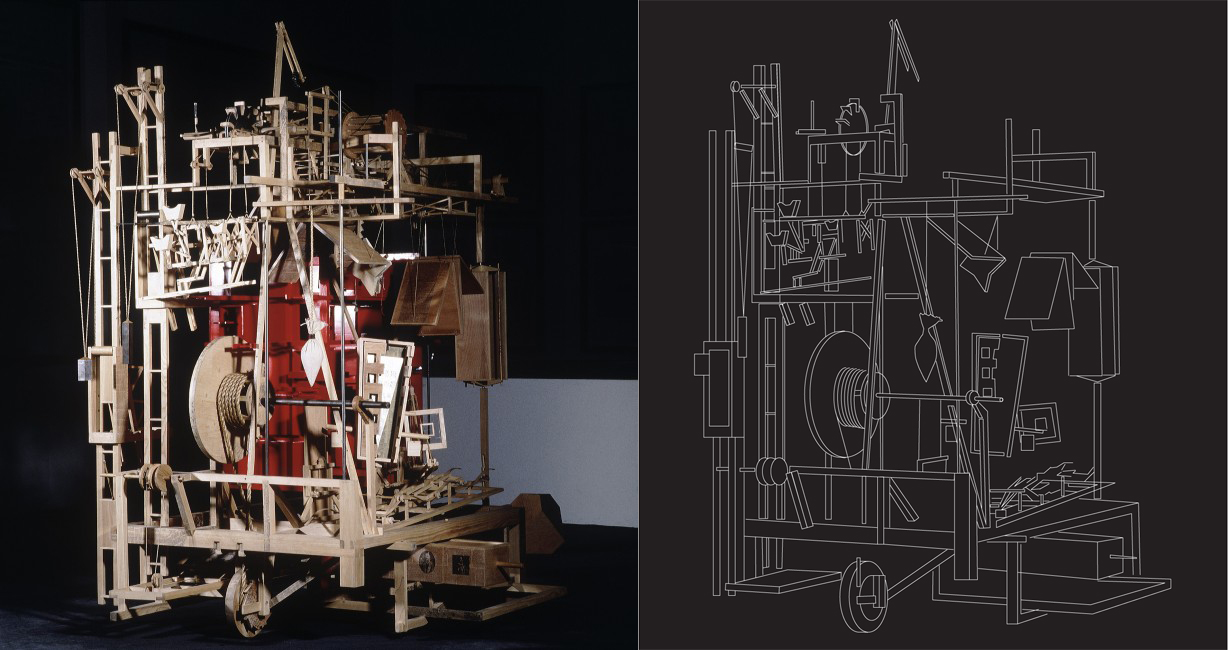 Qui, nella serie #savearchitecture, ho ridisegnato una delle “macchine” di Daniel Libeskind presentate alla Biennale di Architettura di Venezia nel 1985: un “intreccio-catasta” di elementi in legno che simboleggia l’arcaico procedimento dell’ingegnoso costruire così come una condizione alienata metafisica, in sintesi un oggetto proveniente da un passato remoto del futuro, #remakearchitecture, ridisegnare per capire.