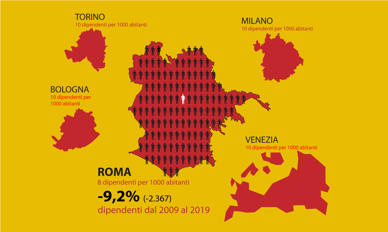 #Caudodainumeri Roma ha 150 anni, nel 1871 aveva 170 mila abitanti, Napoli allora ne aveva quasi 500 mila. Oggi Roma ha 2,8 milioni di abitanti. Non c’è nessuna città europea che è cresciuta così tanto in così poco tempo.#Caudodainumeri Roma ha 2.856.000 abitanti (2019). Dal 1971 sono +116.000, ma città consolidata -800.000 abitanti, mentre quartieri intorno al GRA +800.000. Teniamone conto quando parliamo di Roma, mobilità, accesso ai servizi. Il 50% dei Romani ci abita. Non è periferia, è Roma.#Caudodainumeri Il territorio di Roma Capitale si espande per 128.530 ha. Oltre il 28% di questa superficie circa 51.729 ha è costituita da terre agricole. Leghiamo il ciclo dell’urbano a quello agricolo e facciamo di Roma una città a natura d’uomo. #RomaAgricola #CaudoSindaco#Caudodainumeri 50 mila ettari è il suolo agricolo di Roma, di questi 18 mila ettari sono immobili pubblici: una grande responsabilità per costruire Roma Agricola. #RomaAgricola#CaudoSindaco#Caudodainumeri Roma ha 2200 abitanti ogni km2, Parigi circa 9000. Teniamone conto quando parliamo di trasporti o di città dei 15 minuti. Per Roma è un vantaggio: si possono realizzare interventi di rigenerazione urbana sostenibili, di forestazione urbana per riduzione Co2.#Caudodainumeri Non tutte le strade (e ferrovie) portano a Roma allo stesso modo. Ogni giorno 684.000 persone entrano a Roma. Il 26% viene dai Castelli, il 16% dall’Aurelia, 14% dalla Pontina, 12% da Tiburtina e Casilina, 9 % dalla Salaria, 8% dalla Flaminia, 4% dalla Cassia. È forse il caso di prolungare la metro A da Anagnina fino all’A1 e fare lì un bel parcheggio di scambio gomma-ferro e alleggerire così Anagnina e soprattutto il GRA?#Caudodainumeri Ogni giorno a Roma diamo da mangiare a 144.000 bambine e bambini delle scuole d’infanzia statali e comunali. Sono circa 13 milioni di pasti ogni anno scolastico, una montagna di rifiuti organici. Non sarebbe il caso di trattarli con le tecniche di compostaggio per trasformarli e aumentare così la differenziata ed evitare di inviarli in giro per l’Italia? Risparmieremmo, anche, quasi 500 euro a tonnellata.#Caudodainumeri Oggi #Roma ha lo stesso numero di abitanti del 1971 (50 anni fa): circa 2,8 milioni. Il numero di famiglie, invece, nello stesso periodo si è moltiplicato, con un aumento del 65% (da 826.990 a 1.368.269, dato 2017). Per questo, nonostante la popolazione di Roma sia ormai stabile da anni, c’è però bisogno di più case. Non da costruire ex novo, ma da realizzare attraverso il recupero di immobili esistenti non residenziali e con il frazionamento degli appartamenti più grandi. Ecco un punto importante del programma di governo: favorire il riuso dell’esistente e il cambiamento radicale di parti della città costruite male durante la febbre edilizia del dopoguerra, con materiali scadenti e senza il rispetto delle norme antisismiche.#Caudodainumeri Nel 2019 le famiglie composte da una sola persona erano 605 mila, il 45% del totale (1.359.000). Nei municipi 1 e 2 più del 50%. Le politiche sociali, sulla casa, i tributi locali (TARI), tutte le politiche pensate per la famiglia tengono conto di questo dato? No, per questo una volta al governo di Roma bisognerà fare un provvedimento che rimoduli tutti i tributi, gli aiuti e le politiche sulla base della effettiva composizione familiare.#Caudodainumeri A chi appartiene il suolo di Roma? 14.170 ettari sono di Roma Capitale (11%). Gli altri soggetti pubblici (Stato, Regione, società, enti pubblici) possiedono 19.591 ha (15,2%). Oltre 1/4 del suolo e degli edifici sono di proprietà pubblica, 33.762 ha (26,2%). Si tratta di una condizione ideale per ridisegnare il volto della città. È l’eredità di Roma Capitale, che va rinnovata anche per poter dare un nuovo significato all’essere Capitale.#Caudodainumeri Il 3 febbraio Roma Capitale ha compiuto 150 anni. A quel tempo l’urbanizzato si estendeva per 383 ettari e il Colosseo era periferia. Oggi l’urbanizzato di Roma si estende per 50.710 ettari. Nessuna capitale europea è cresciuta tanto e in così poco tempo.#Caudodainumeri A Roma ci sono 1.250 alberghi, ora quelli aperti sono 50 (170 a giugno). A Fiumicino nel 2020 i passeggeri totali sono stati 8,6 mln, nel 2019 43,4 mln (-80%). Il solo vaccino non basterà, serviranno politiche nuove per un nuovo modello di sviluppo economico.#Caudodainumeri A Roma si vive e si lavora in gran parte attorno al #GRA. Il 50% dei posti di lavoro in imprese private di Roma sono per lo più intorno al GRA, dove vivono circa 1,2 milioni di romani. Il Sacro GRA oggi è l’unica forma urbis di una città senza più forma. Per me Roma riparte da lì, dall’ultima città costruita. 2026 e 2025, due scadenze: i fondi del recovery plan e il giubileo per dare forma all’ultima città costruita dove vive e lavora la maggior parte dei romani. Mettiamoci al lavoro.#Caudodainumeri#1marzo I dipendenti del comune di Roma sono 23.483, dal 2009 al 2019 sono diminuiti del 9,2% (-2.367). I dirigenti sono 163, (-40,5%), cioè meno di un dirigente ogni 100 dipendenti. Milano ha 10,2 dipendenti ogni 1.000 abitanti, come Bologna, Venezia e Torino (9,8). Per avere lo stesso rapporto di Milano, Roma dovrebbe assumere 5.000 nuovi dipendenti, e tra questi centinaia di dirigenti. I dati mostrano un esercito sempre meno numeroso e senza generali. Basta, la si smetta con la retorica che il Comune di Roma ha troppi dipendenti: affermazione non vera che ha fatto malissimo alla nostra città. I numeri dicono che Roma ha meno dipendenti di tutte le altre città.#Caudodainumeri#8Marzo Nel 2019 le donne entrate in contatto con i centri antiviolenza a Roma sono state 1.767, di cui il 40% erano coniugate. Servono case rifugio, case per la ripartenza che possano ospitare donne sole o con minori.#Caudodainumeri I beni immobili confiscati alle mafie a Roma sono 447. È un indicatore della pervasività delle mafie a Roma: oltre 90 clan e circa 100 piazze di spaccio. La maf