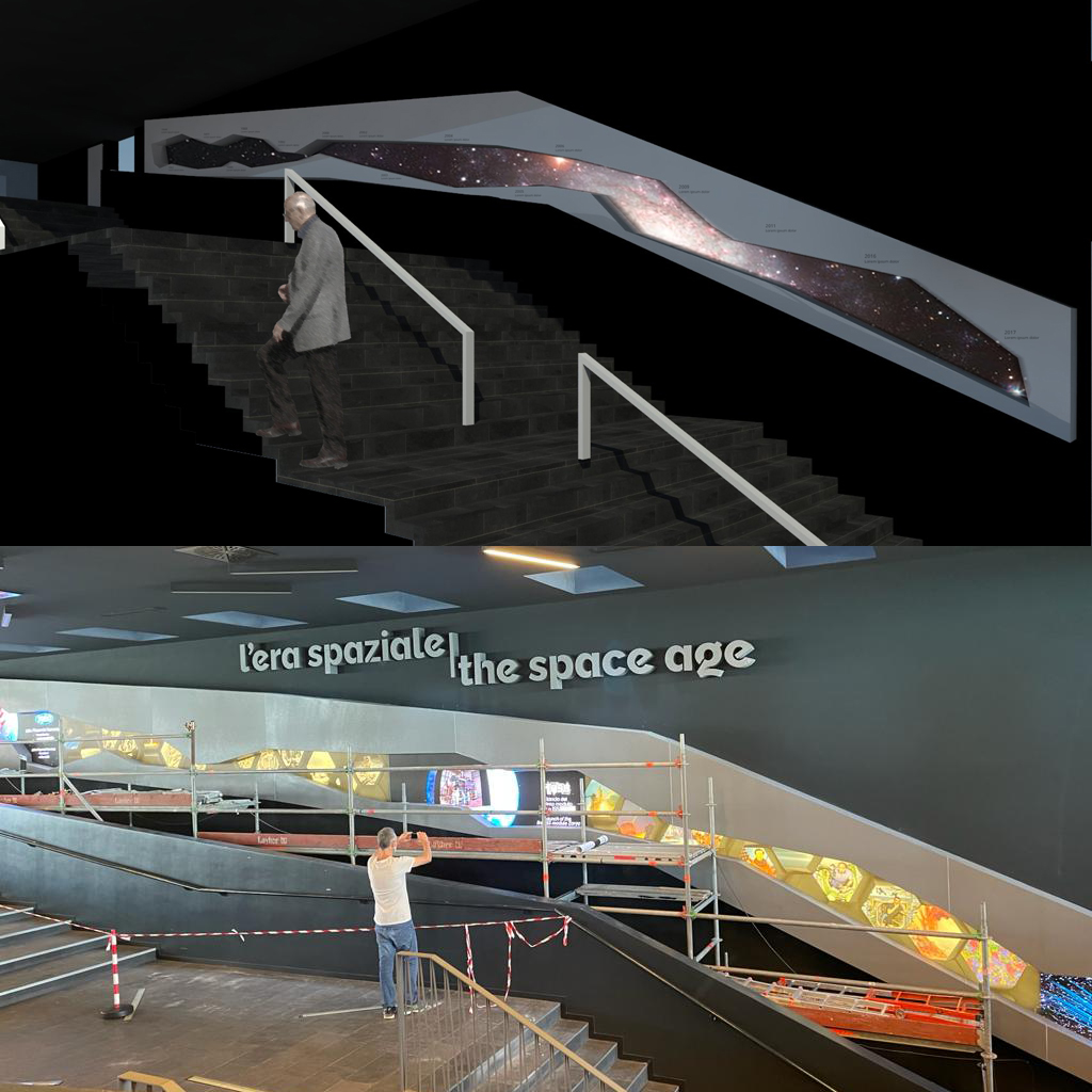 la parete espositiva “storia dello spazio” in costruzione LINK al progetto disegno costruttivo della controparete/cassonetto “storia dello spazio” #blackhole APPROPRAZIONE: l’Ingegnere Gabriele Impresario di ASI si fa un selfie davanti alla parete espositiva (foto: dai social) Condividi: Condividi su Facebook (Si apre in una nuova finestra) Facebook Condividi su X (Si apre in una nuova finestra) X Condividi su LinkedIn (Si apre in una nuova finestra) LinkedIn