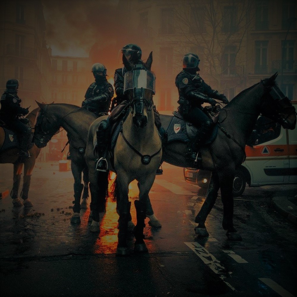 un cyborg aperto dove si vede il pilota contenuto al suo internoQuello per molti fu il giorno che segnò la non più sanabile frattura tra gli abbienti integrati nella società e i non abbienti, emarginati e oppositori del sistema, anche perché l’eco della vicenda si diffuse e inorridì tutto il mondo e, tra le prime manifestazioni eclatanti, avvenne la famosa occupazione della Tour Eiffel a Parigi. Anche in questo caso l’occupazione fu cruenta dato che, come noto, il livello di sicurezza era altissimo, gli occupanti agirono in due modi. Quattro squadre salirono, come normali visitatori, sui quattro piloni in anticipo. Altre sei squadre arrivarono dopo e attaccarono la sorveglianza a terra così da distrarre tutti dallo spettacolare arrivo di droni che rifornirono di armi le squadre che si trovavano già in alto. Il piano fu congegnato molto bene perché permise agli occupanti in alto di prendere il controllo della parte alta della torre e far andare via tutti i turisti e visitatori mentre sotto c’era questa guerriglia urbana che teneva la sicurezza e la polizia impossibilitate a salire. Qualche agente e responsabile della sicurezza che si trovava in alto venne ucciso o fatto prigioniero. Alcuni elementi delle squadre, una volta allontanati tutti i visitatori, si occuparono di bloccare gli accessi dalle scale, costituendo anche dei presidi armati. Venero inoltre messi fuori uso gli ascensori che connettevano terra al primo livello di sbarco della torre. Iniziato la mattina presto, in serata la torre era sotto il controllo degli occupanti, che srotolarono un enorme striscione con scritto sopra “don’t listen”. Nelle rivendicazioni gli occupanti citarono in primis che l’occupazione si era resa un atto dovuto a seguito dell’orribile violenza commessa dalla polizia sui “nomadi pattuglianti”.