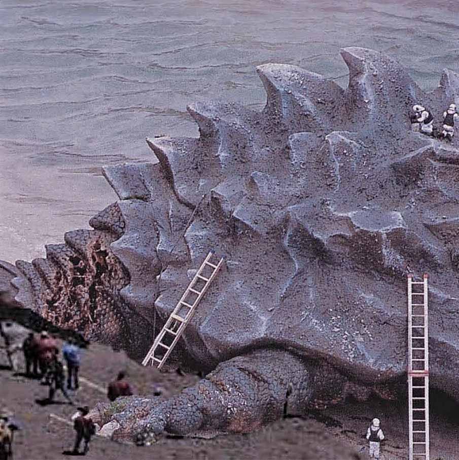 DisneylandUna creatura mostruosa ed incredibile venne ritrovata, purtroppo senza vita, sulle coste. Era enorme, una sorta di gigantesca testuggine dotata di una corazza/guscio durissima grigiastra-verde con delle specie di creste di gallo in superficie e con delle zampe che sbucavano da sotto. Purtroppo non aveva più la testa. E nessuno sapeva come era arrivata fin là una bestia di tali proporzioni. Arrivarono gli scienziati in tuniche bianche che fecero tutte le loro analisi decretando che la bestia era il frutto di mutazioni genetiche sconcertanti, in particolare per la crescita della mole corporea, pari a circa 100 volte. Nello stomaco venne trovata addirittura una balena e un piccolo yacht. Alcuni sostennero che era dovuta al noto naufragio dello scorso anno del cargo che trasportava plutonio, altri invece dicevano che erano esperimenti nucleari-radioattivi fatti dai governi in grande segreto e sfuggiti dal controllo. I biologi riscontrarono che oltre alle gigantesche proporzioni era chiaramente una mutazione tra diverse specie di animali anche di generi differenti: testuggine mischiato ad un rinocefalo ma con alcuni organi vitali chiaramente riconducibili ai mammiferi marini (in particolare ai trichiechi e al dugongo).