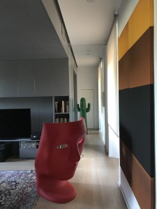 Scorcio con la poltrona Nemo di Fabio Novembre in primo piano e con il cactus Gufram di Guido Drocco e Franco Mello sullo sfondo