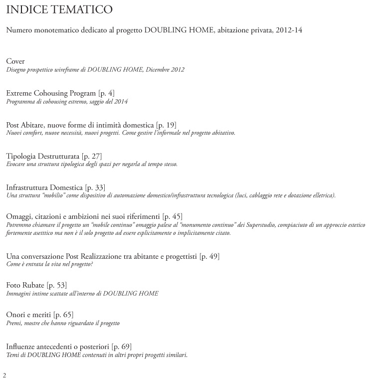 Se Extreme Cohousing Program si fondava sull’estremizzazione della casa iperfunzionalista con estetica assolutista volta al dinamismo e alla massima condivisione degli spazi.