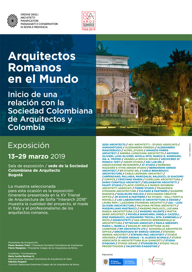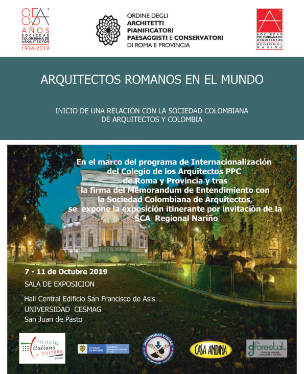 -Esposizione “Arquitectos romanos en el Mundo” a Bogotà, Colombia, promossa dalla Sociedad Colombiana de Arquitectos e l’Ordine degli Architetti di Roma e Provincia, 2019