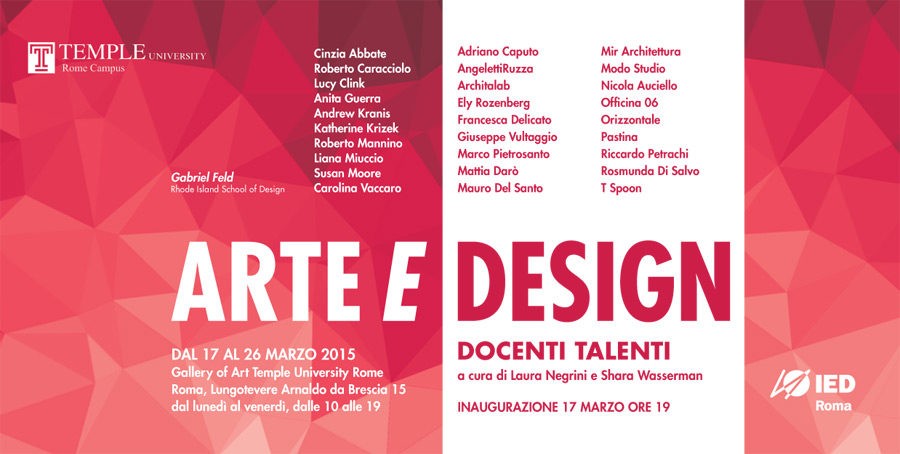 -Mostra collettiva “Arte e Design. Docenti Talenti” organizzata da IED e Temple University presso la Gallery of Art della Temple University in Roma, 2015