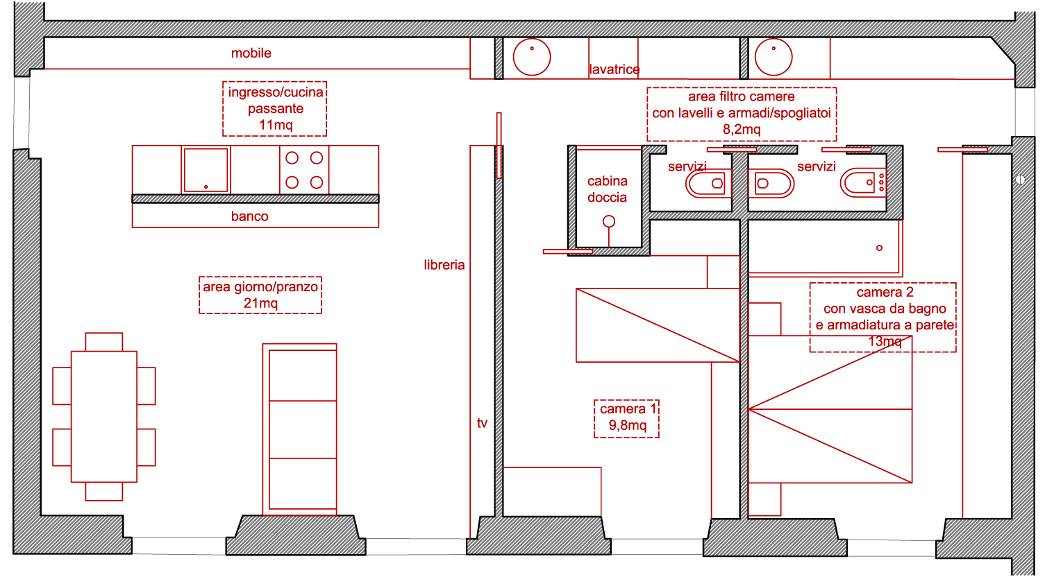 Il corridoio va amato in quanto spazio di percorrenza che ti porta da un ambiente ad un altro, come spazio indefinito degli incontri, della funzione da inventare.