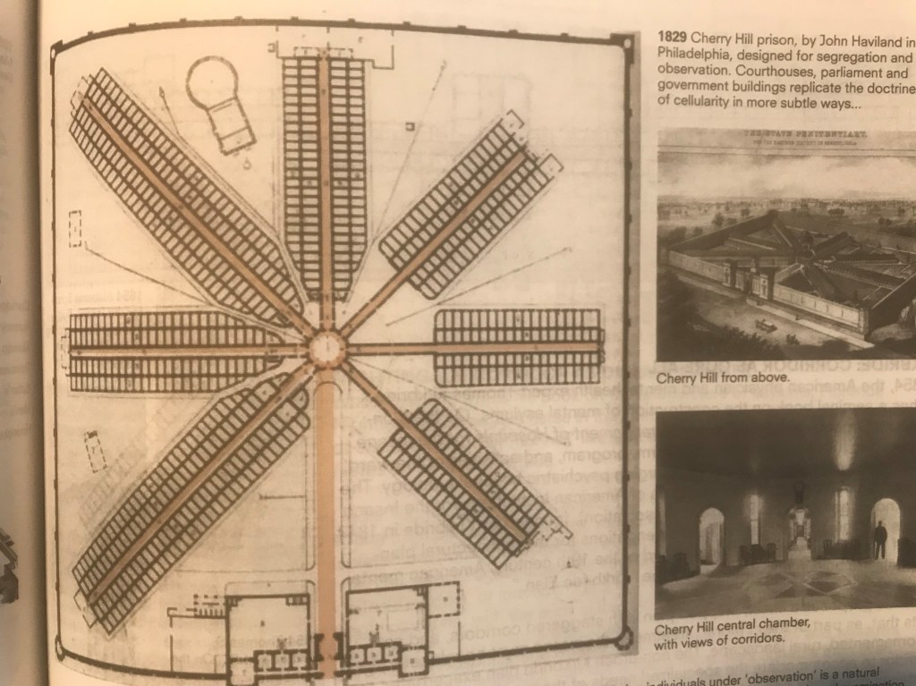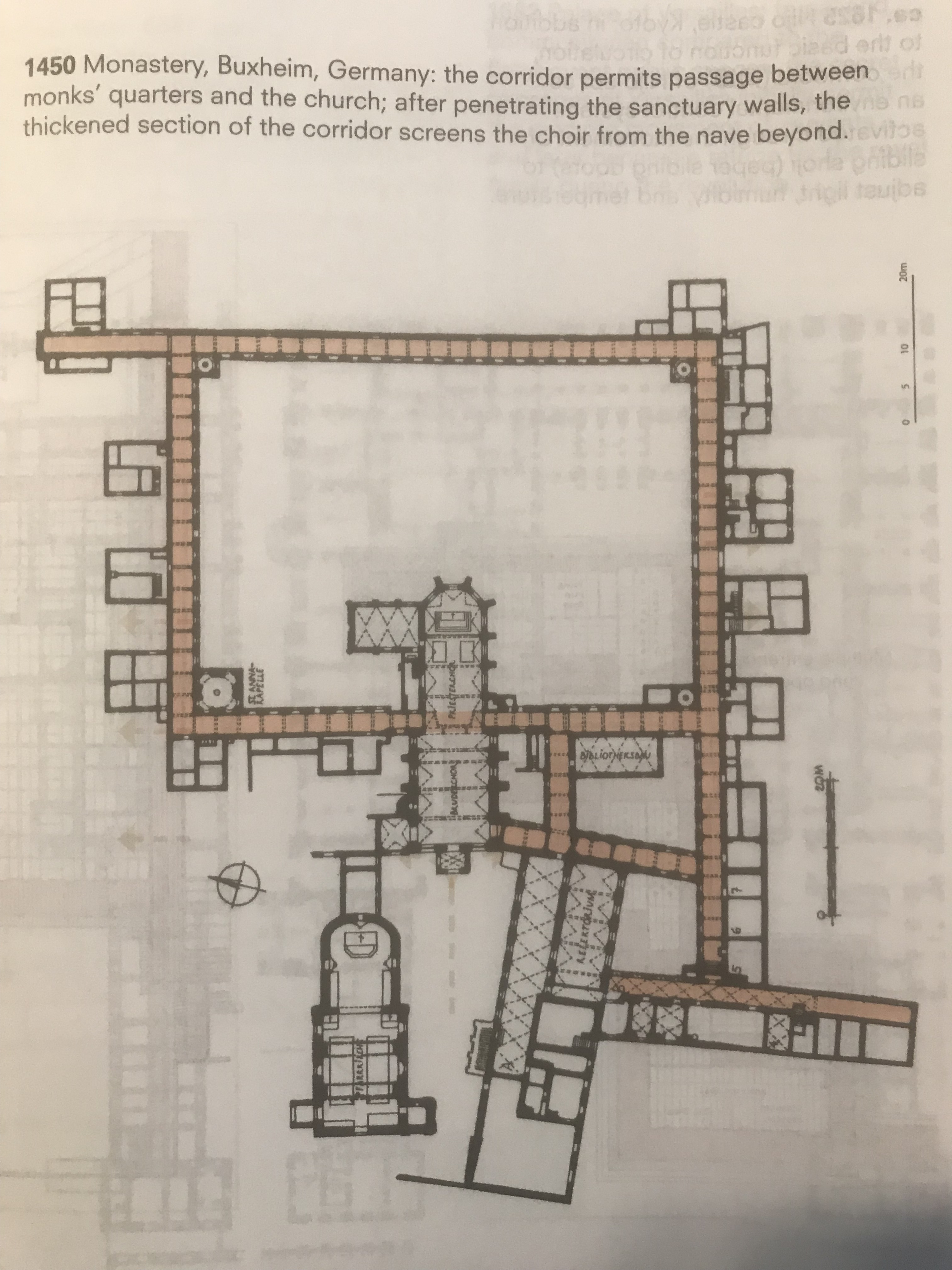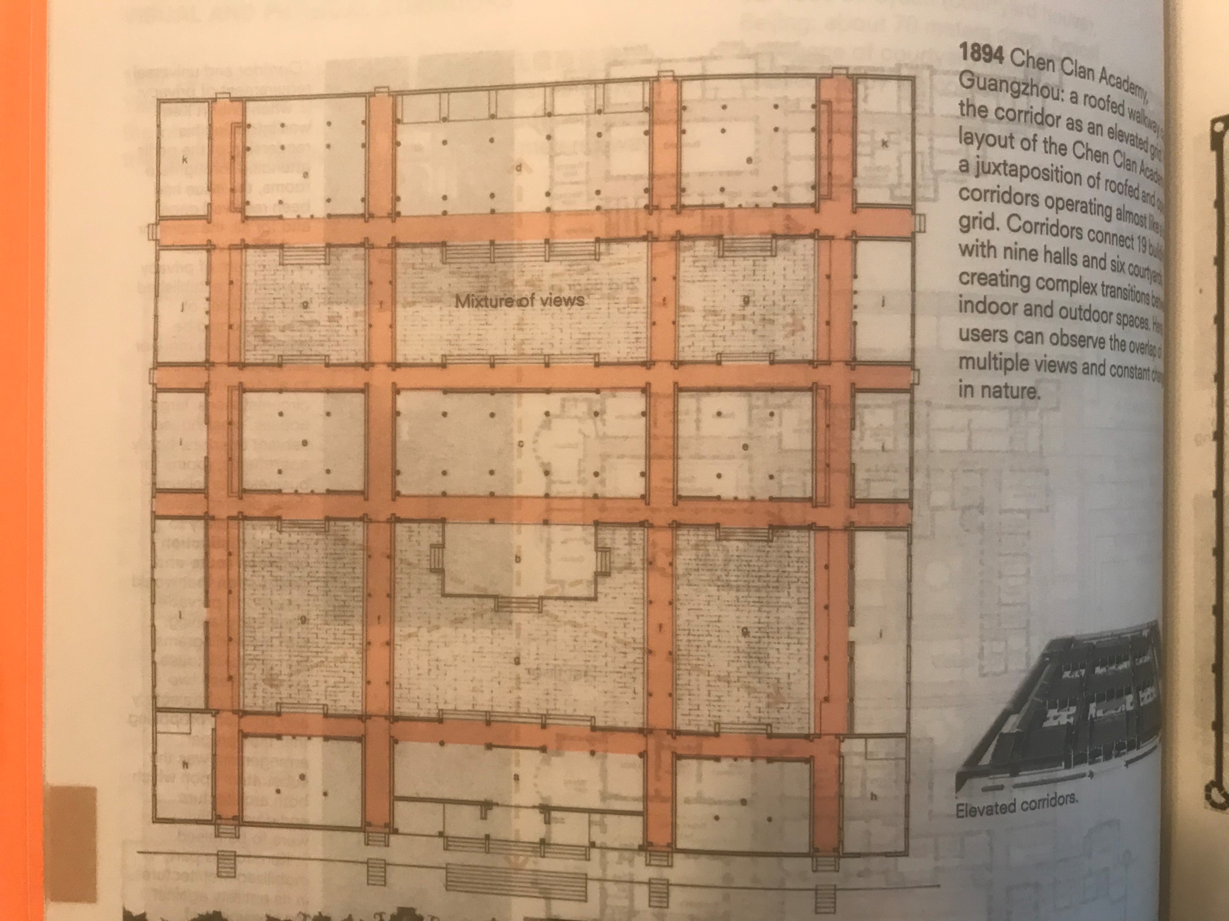 corridoio verso la sala da balloimpianto a corridoi della chen clan academy bivio dei corridoi della prigione di cherry hillcorridoio del hospital for insane army and navy del Kirkbride planpianta della prigione di cherry hillmonastero di buxheimincisione storica de la grande galerie del louvresezione del narkomfin di ginzburgpianta e sezione dell’unità d’abitazione di marsiglia di corbudalla sezione “Corridor” di Elements of Architecture di Rem Koolhaas, Taschen o da internet